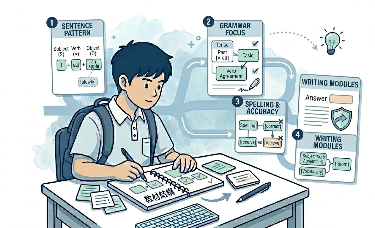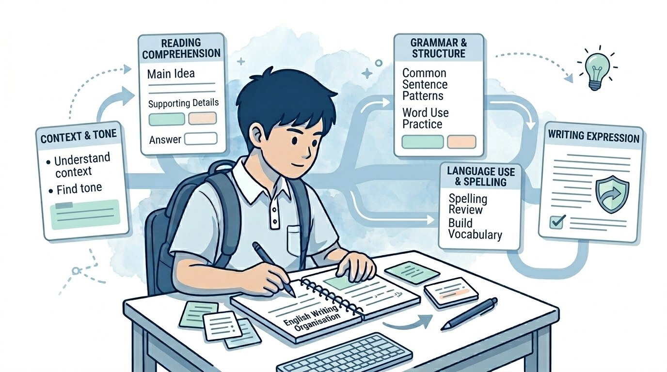 小學英文不只是背生字或記文法規則,而是要真正理解句子如何組織、grammar 如何運用,以及常見 language patterns 如何在不同題型中使用。A教育會按學生程度逐步整理常見句式與 grammar 重點,幫助學生減少混亂與常見錯誤。